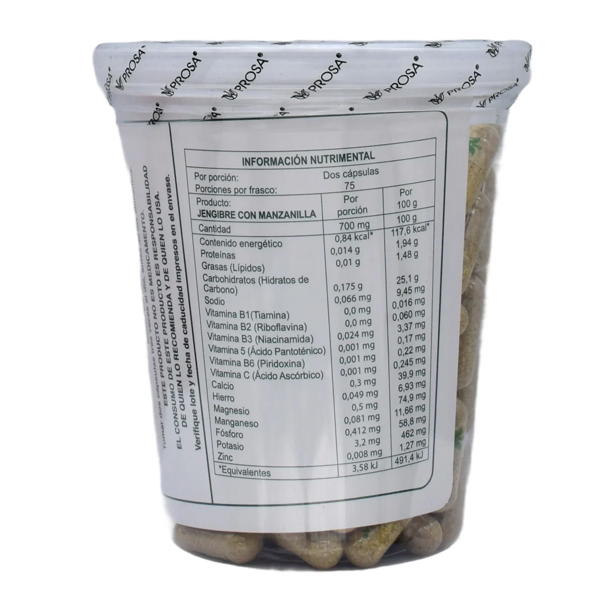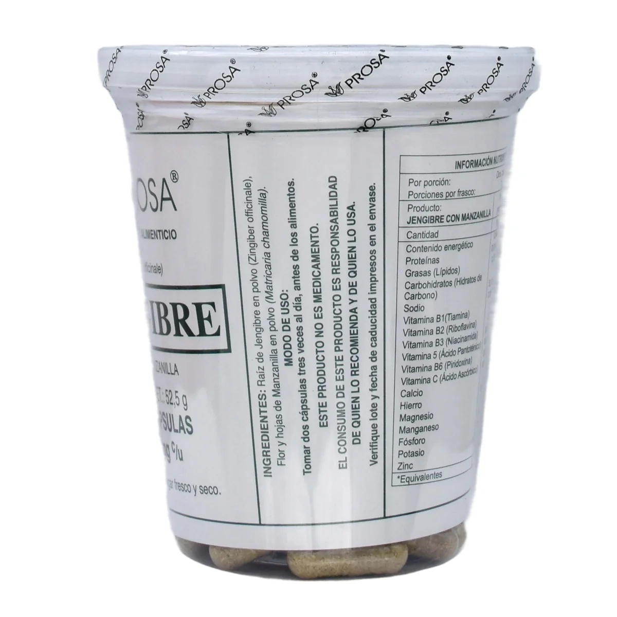 Ingredientes: raíz de jengibre en polvo, for y hojas de manzanilla en polvo.