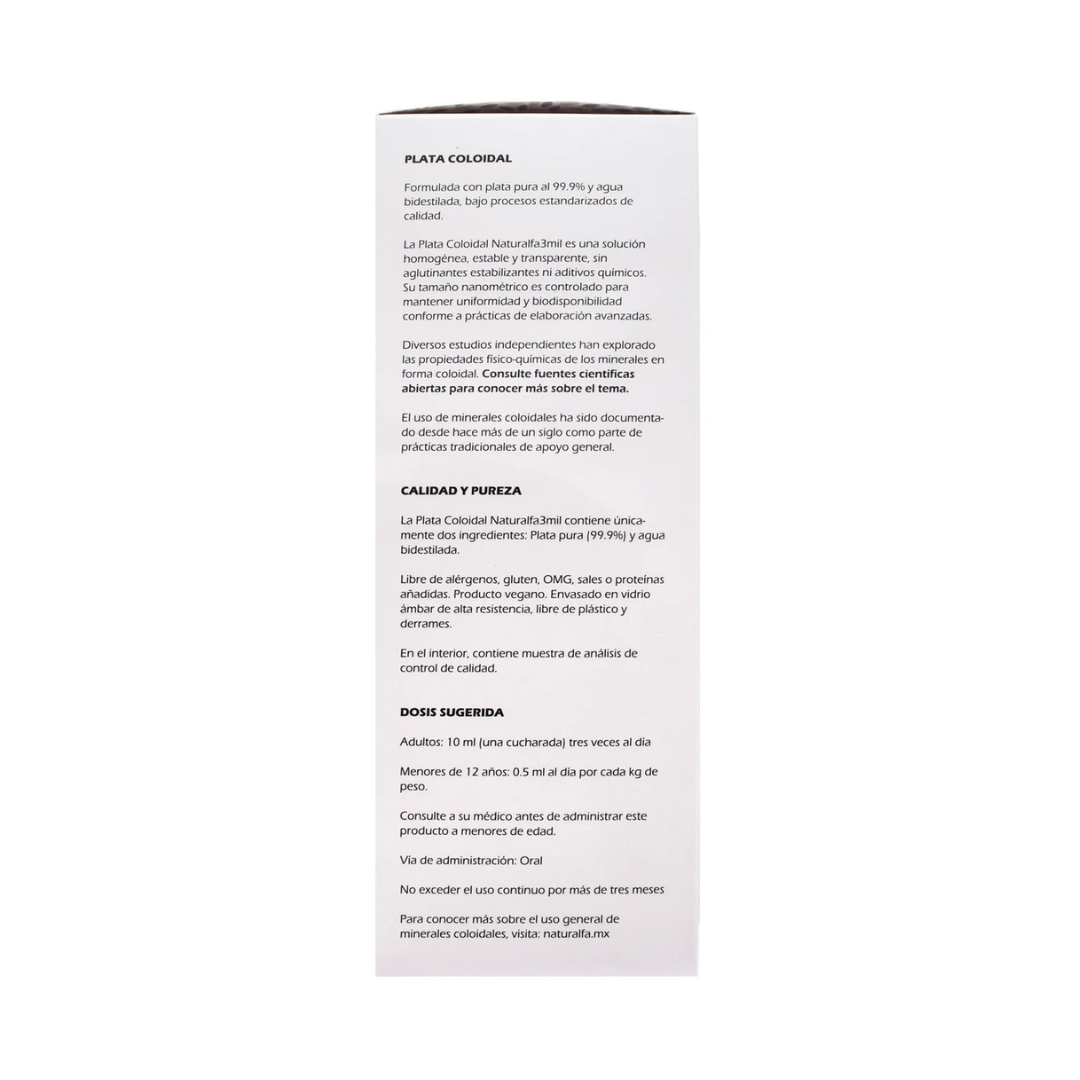Coloide conformado por nanopartículas de plata suspendidas en agua bidestilada, con una concentración de 20 partículas por millón.